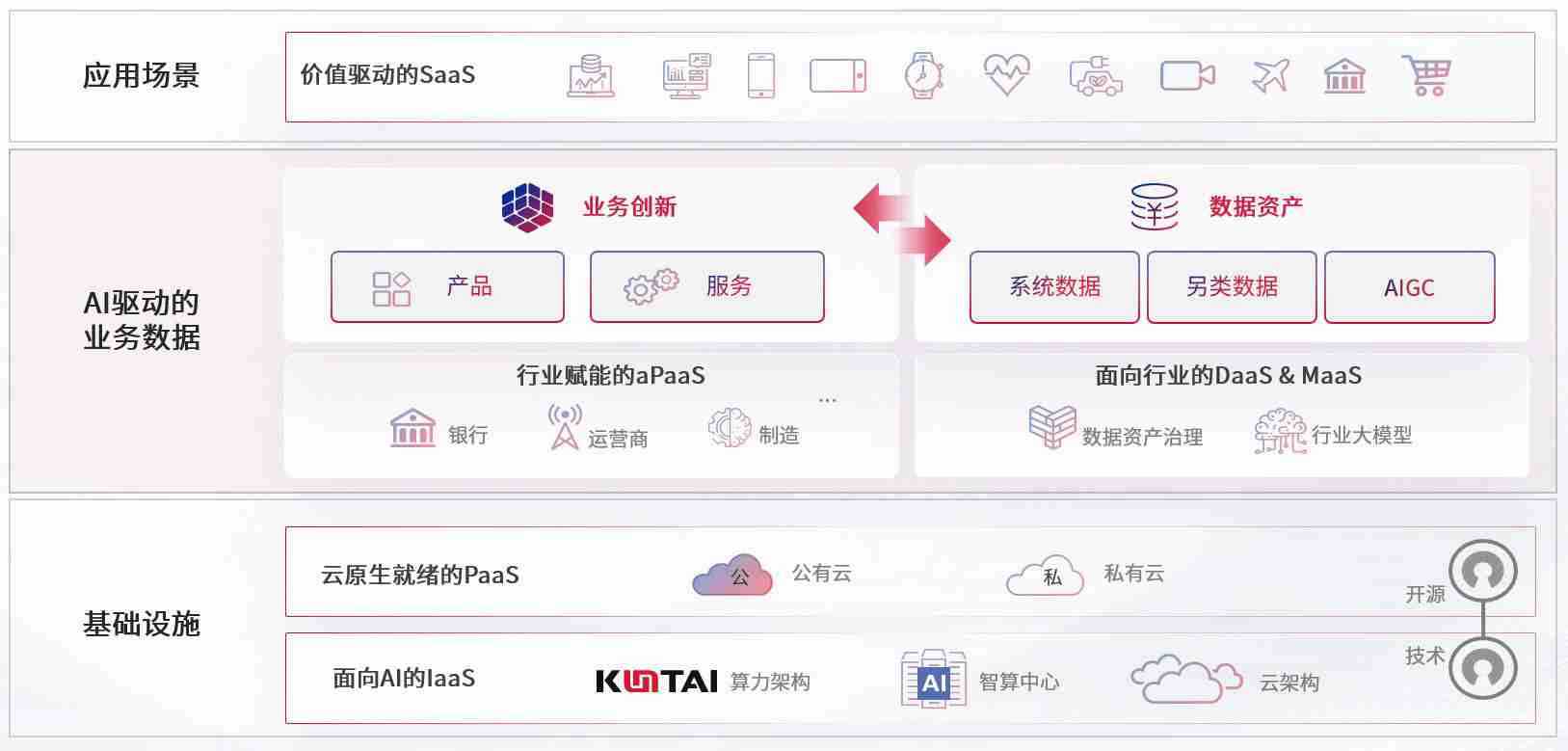 数字时代,,围绕企业数字化转型的关键要素,,亚星代理平台数码开创性的提出数云融合战略和技术体系框架,,着力在云原生、、、、数字原生、、、、AI原生和信创产业上架构产品和服务能力,,为处在不同数字化转型阶段的快消零售、、、汽车、、、金融、、、、医疗、、、政企、、、、教育、、、运营商等行业客户提供泛在的敏捷IT能力和融合的数据驱动能力,,构建跨界融合创新的数字业务场景和新业务模式,,,,助力企业级客户建立面向未来的核心能力和竞争优势,,,全面推动社会的数字化、、智能化转型升级。。。。